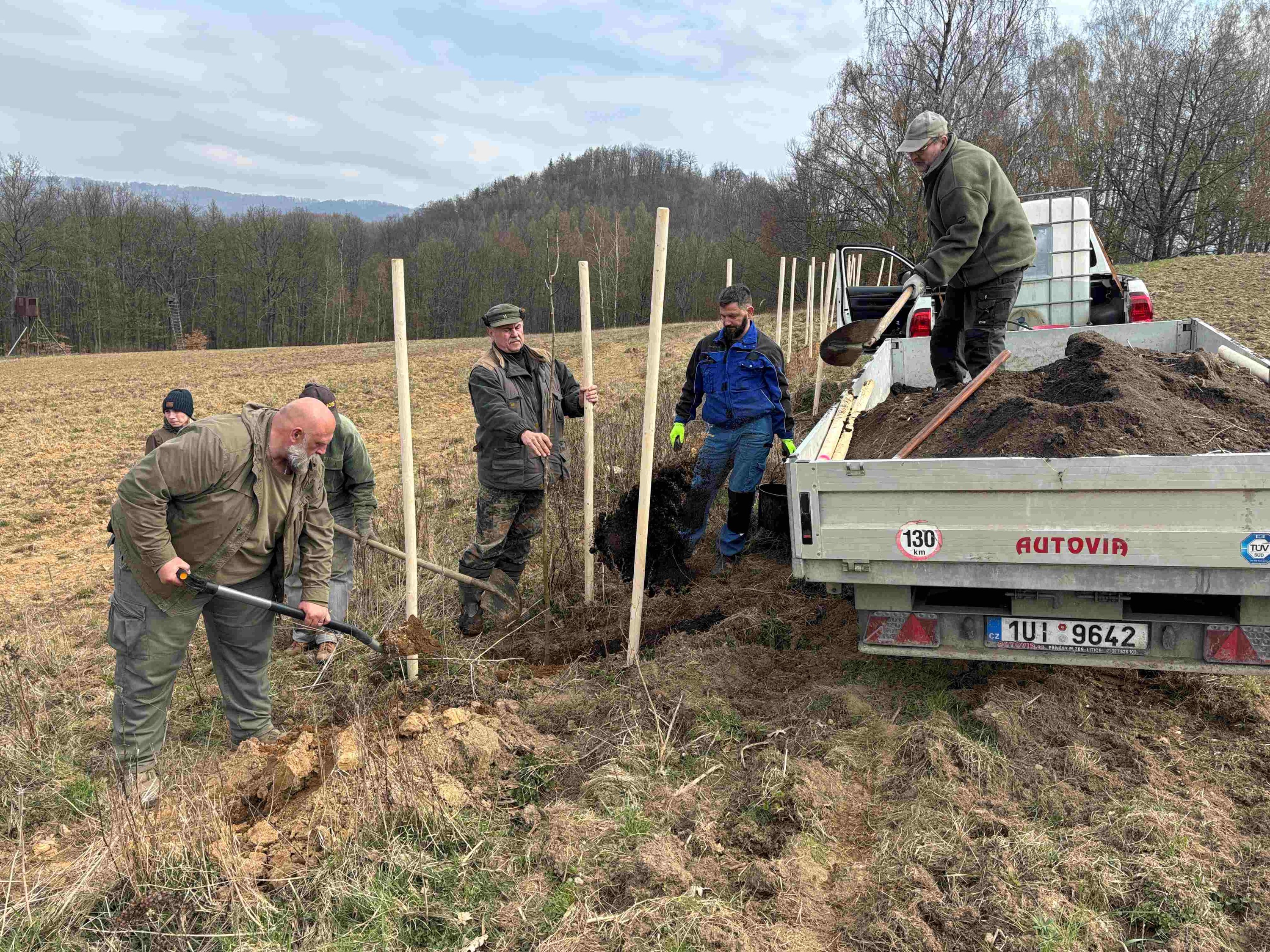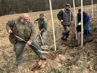Veliký pátek a Bílá sobota ve znamení výsadby ovocných stromů; na zajímavé liniové úpravy v honitbě spolku Zálesák přispěla myslivcům Nadace ČEZ