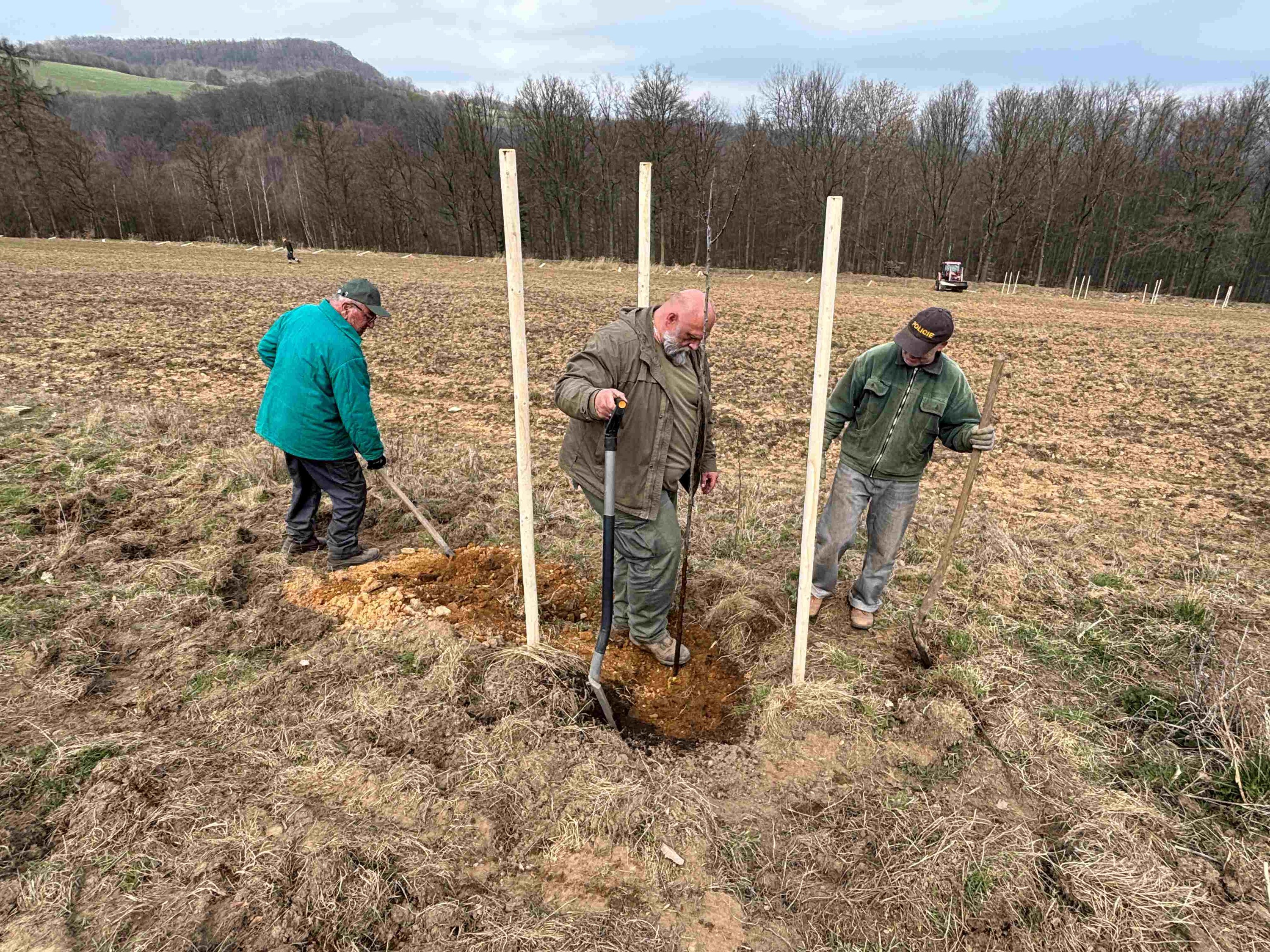 Jak s nadsázkou dodal, vysadí tak pro zvěř několik sadů. Samozřejmě, že náhodní turisté, jdoucí někam cestou či přes louky kolem vysazených stromů, si budou moci rovněž natrhat ovoce na posilněnou. „To je ale teprve hudba budoucnosti. Nejdříve musí ovocnáče zakořenit, zkošatět a dorůst do určité výšky, aby mohly plodit,“ poznamenal ještě Marek Dvořák. Celou výsadbu svépomocí si myslivci, jejichž spolek má čtyřiadvacet členů, rozvrhli na dva dny, a to Velký pátek a Bílou sobotu. Za svou si pochopitelně vzali i následnou péči o stromy.